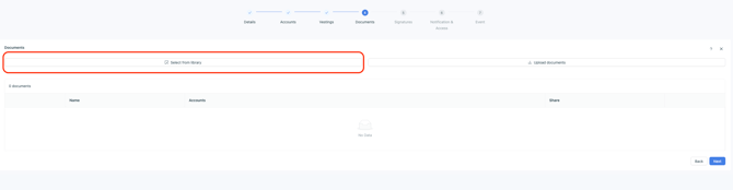 At this stage, you select the relevant accounts, along with the security, the pool, and the documents to be signed.
