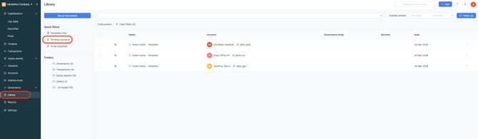 - You can find all documents sent for signature in Library > Signatures.