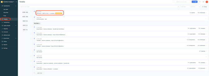 - You can find the grant transactions in Timeline > the event you created or an existing event.