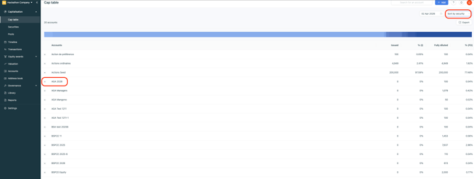 - You can find your transactions in your cap table > Sort by security.