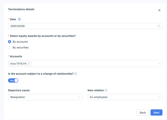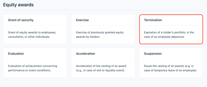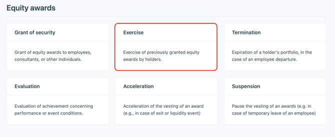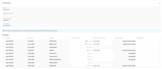 💡 This transaction stops the vesting of the securities and triggers the exercise durations post-departure you indicated when setting up your security.