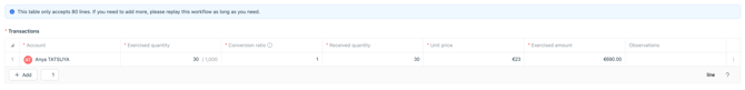 💡 If you have negotiated with the account holder a different quantity or end of exercise period date, you can indicate it in this step.