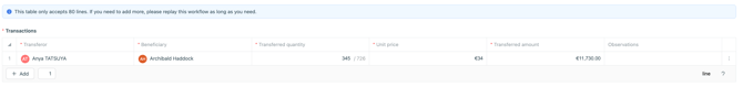 - The unit price or the total price of the transfer (the application will calculate the corresponding value).