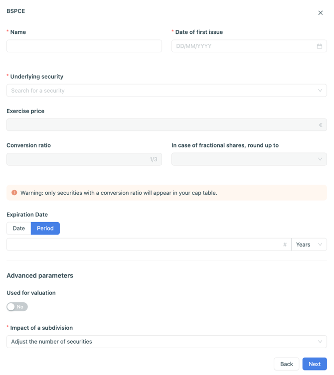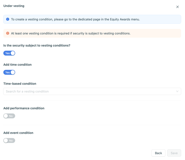 ⚠️ Before linking a vesting to your security, you must first create the relevant vesting(s). You can follow this guide: How to create a vesting?