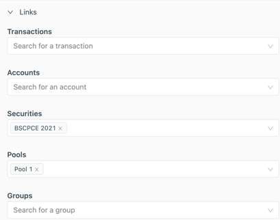 Links: Be as specific as possible, this will allow you to find your document in other places in the app. (Operations, Accounts, Securities, Pools...)