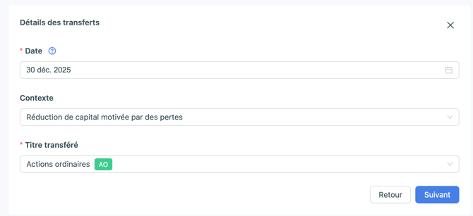 Renseigner la date de rachat, le contexte et le titre concerné.
