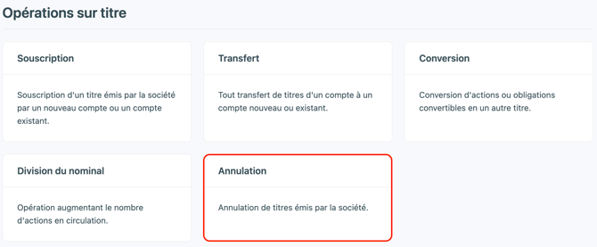 - Puis renseigner le compte de la société et la quantité à annuler.