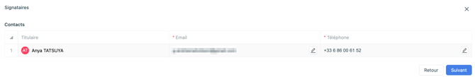 ⑤ Vérifier les coordonnées des signataires, puis cliquer sur suivant pour envoyer les documents.